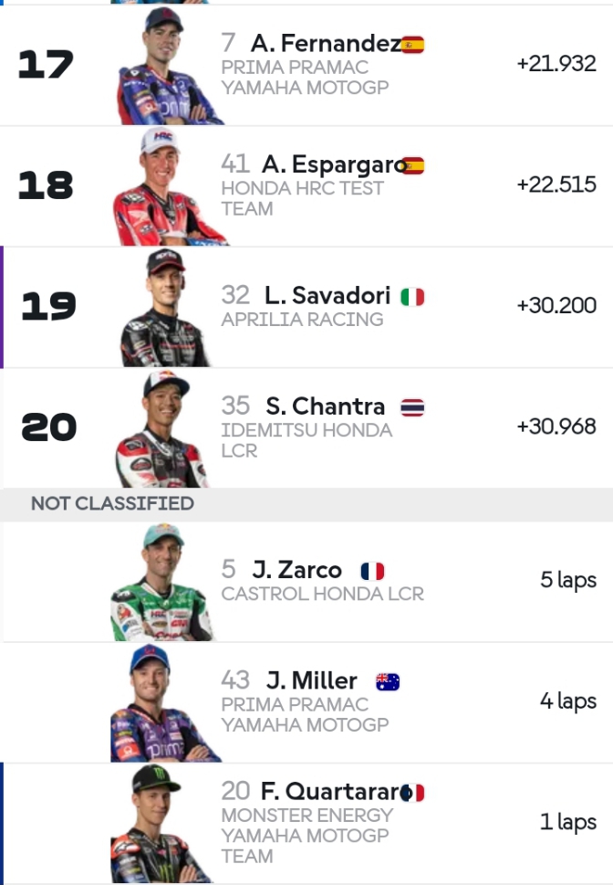 Sebenarnya balapan masih panjang. Namun karena ketidak sabaran Quatararo sehingga dia terjatuh. Seharusnya dia menunggu bersabar dan menantikan momen yang tepat untuk menyalip balik Marquez.