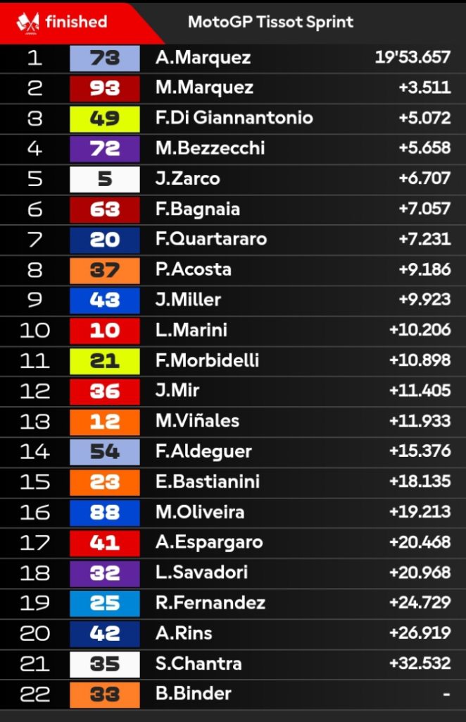 3 LTG Digianantonio merebut podium dari Bagnaia. Pembalap Italia itu jadi berjarak 4 detik lebih dari pemimpin balapan