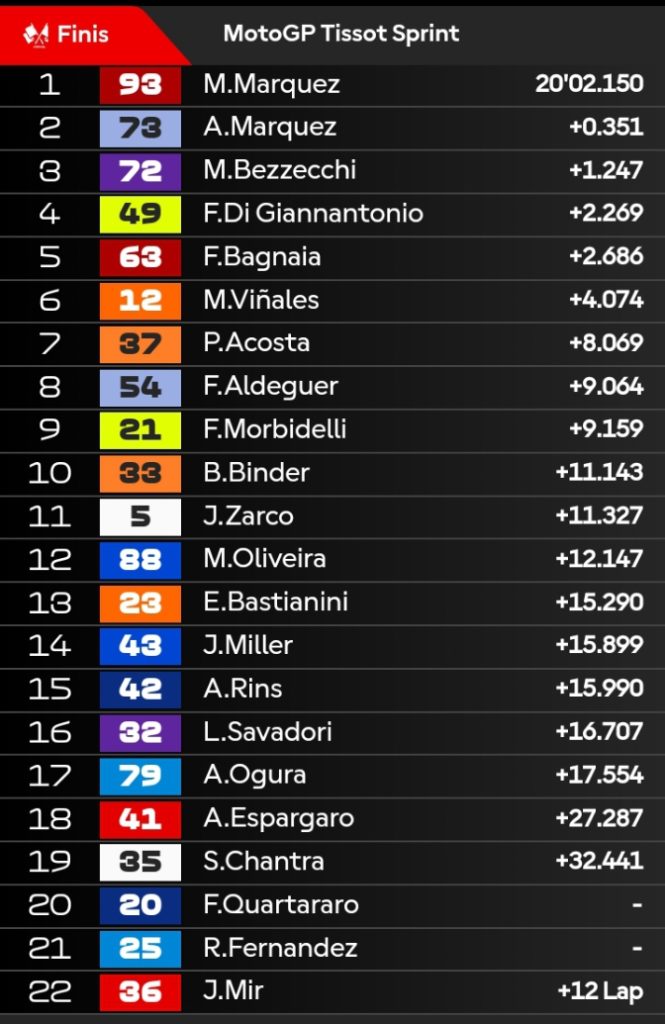 Alex terus membututi dan menempel kakaknya. Sesekali hampir menyalip. Bagnaia berada di posisi lima.