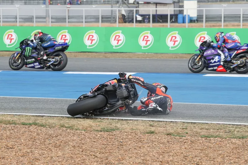 Accosta terjatuh lagi. Tabrakan dengan pembalap 88.